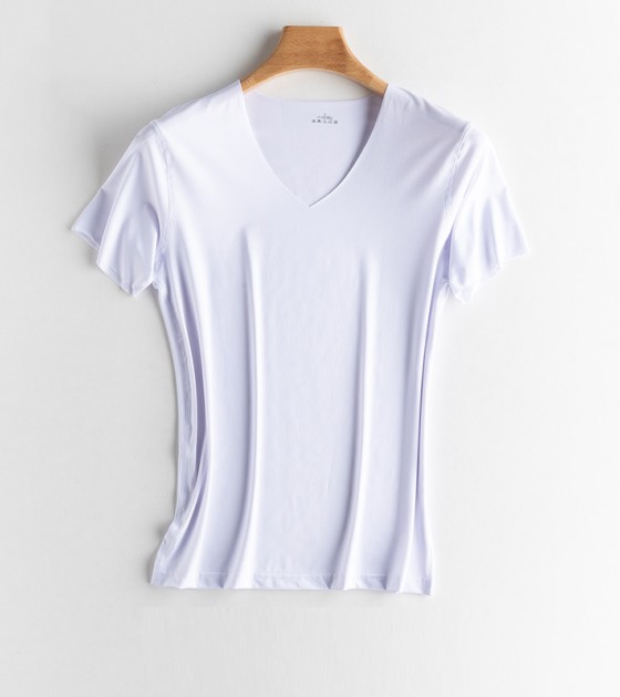 KYUSHUAD Ice Silk Seamless Short Sleeve T-shirt for Men V-neck Summer Thin Elastic Fit Top Mesh Quick Drying