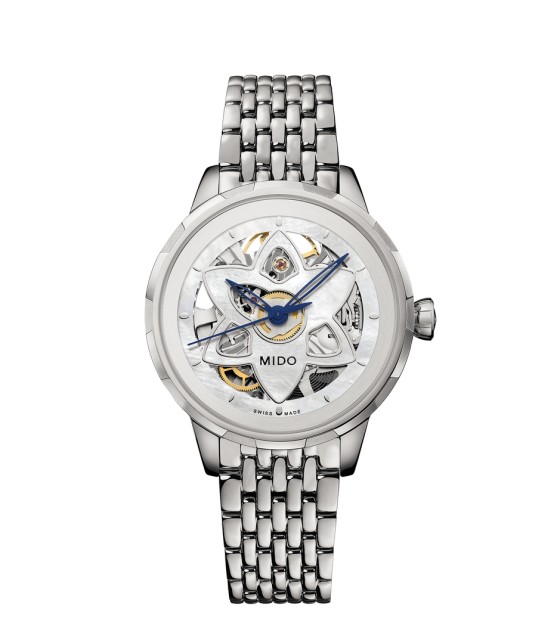 For the first time, Mido has created a skeleton Swiss watch especially dedicated to women. The new and audacious Rainflower Blossom features delicate lines, directly inspired by the lotus flower shape of Singapore’s contemporary ArtScience Museum. Resolutely feminine petals are interlaced along the edges. Adorned with an openwork flower, the captivating dial reveals at its centre the Caliber 80 – the latest-generation automatic movement, whose mainplate has been specially skeletonised and decorated. It invites the wearer to marvel at the passing of time with audacityand elegance.
