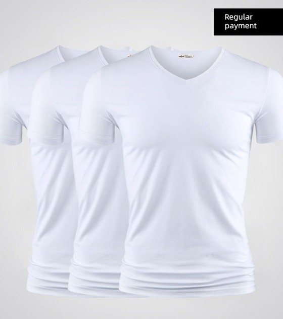Modal Men's Solid Color and V-neck Slim-Fit Ice Silk Short Sleeve Shirt