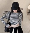 Striped T-shirt long sleeve color bump short style top